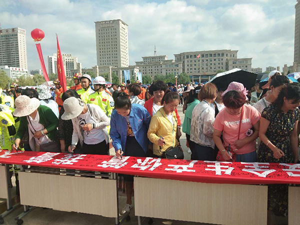 ? ??活動(dòng)現(xiàn)場(chǎng),群眾代表宣讀了安全生產(chǎn)倡議書;參加活動(dòng)的市領(lǐng)導(dǎo)還與全體人員共同開展了安全生產(chǎn)倡議千人簽字活動(dòng)
