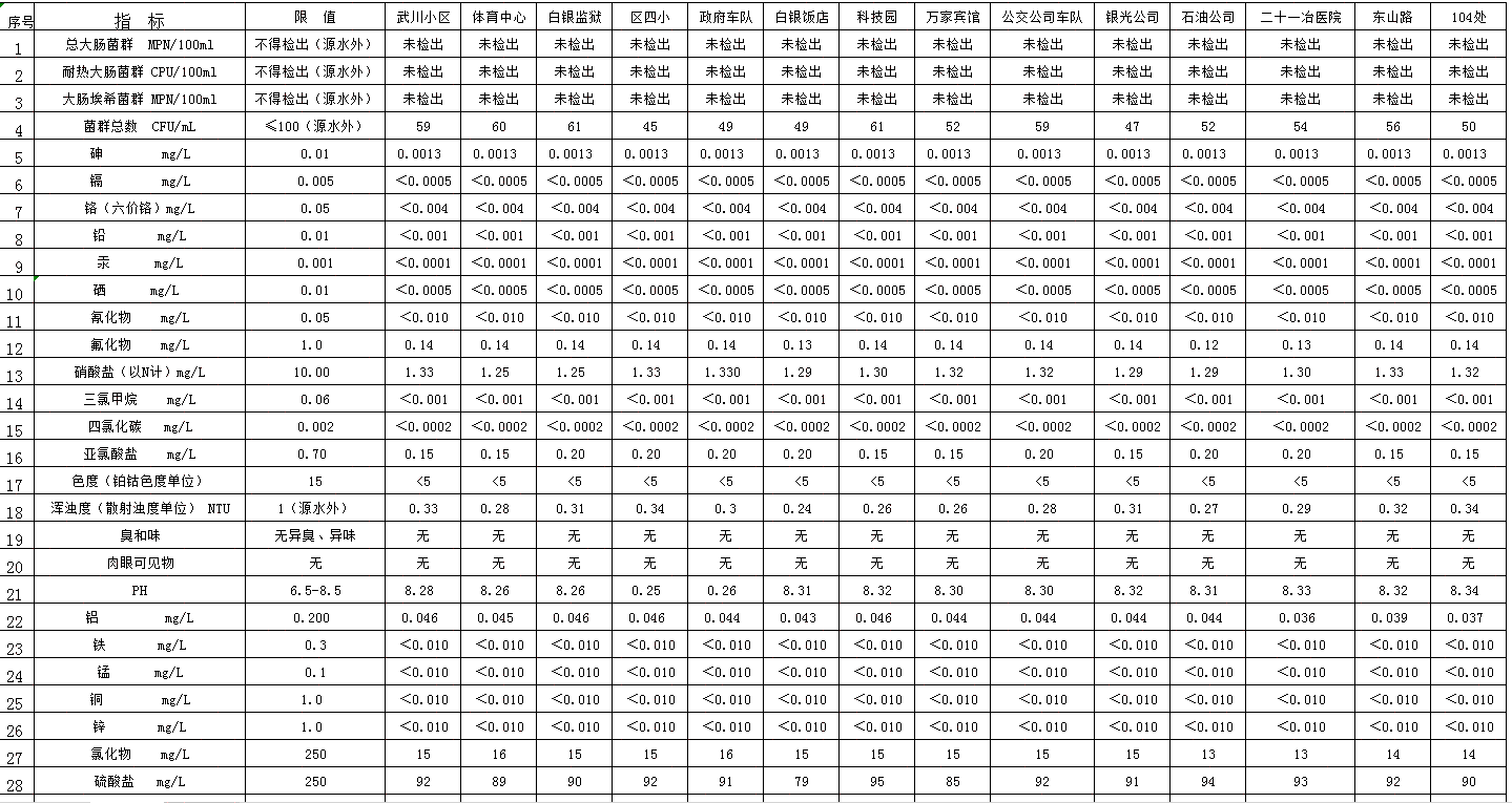 2020年2月用戶(hù)水龍頭水檢測(cè)表