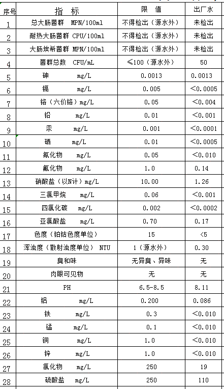 2020年3月出廠水檢測表