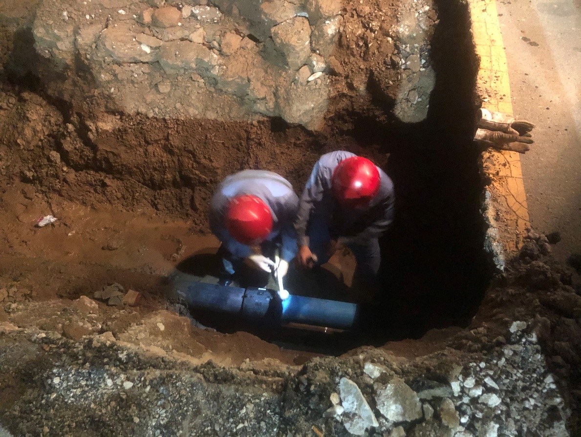 2020年7月6日14時許,在排查過程中發(fā)現(xiàn)紅星街處供水管線破裂,為了不影響高考期間供水,我公司立即組織人員搶修,17時完成搶修工作,恢復(fù)正常供水。20時左右,又有市民反映西山路處有漏水情況,我公司馬上組織人員檢查,最后發(fā)現(xiàn)西山路處一分支管線破裂漏水,為了保障周邊兩個小區(qū)的用水,我公司立即維修,23時完成了維修,保障了周邊小區(qū)高考期間的安全供水。